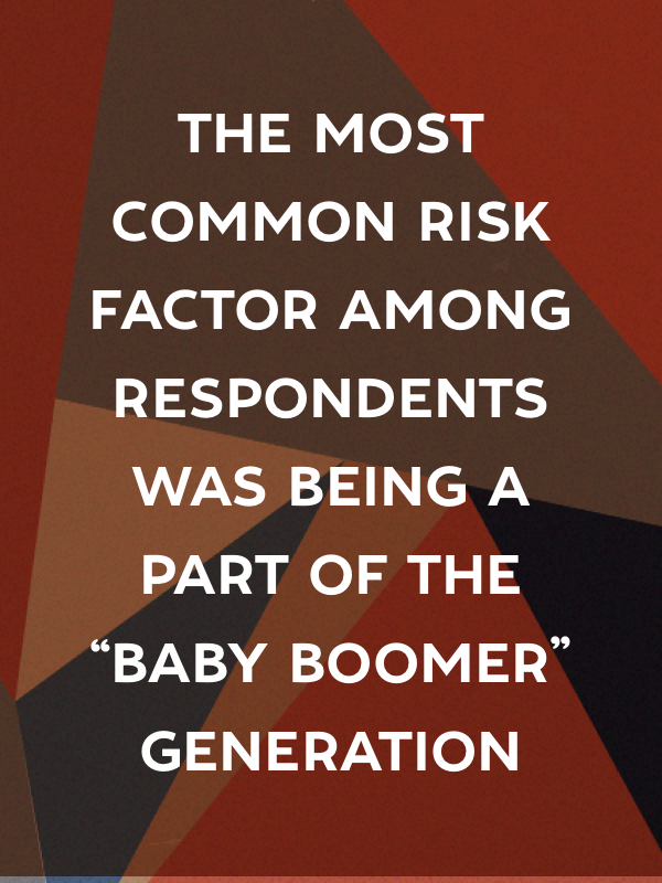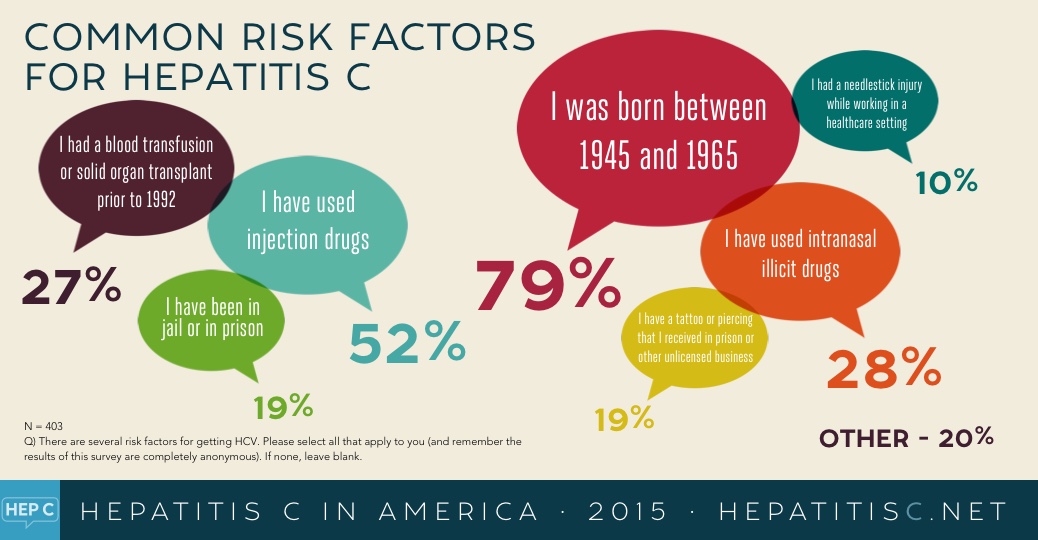 The most common risk factor among respondents was being born between 1945 and 1965, followed by use of injection drugs. Other risk factors included blood transfusions or organ transplant prior to 1992, and spending time in prison.