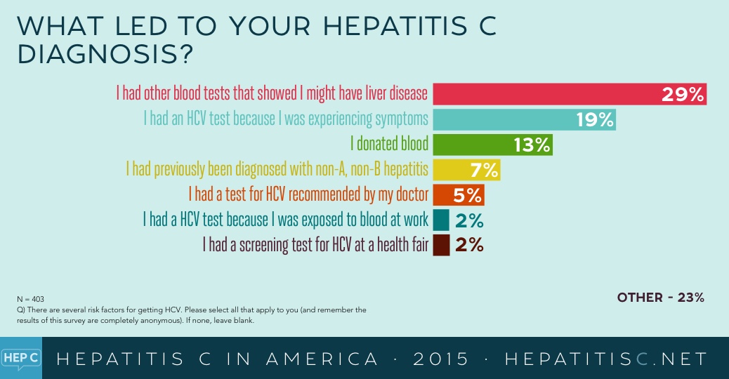 More respondents were diagnosed through blood tests indicating liver disease that required follow-up testing for the Hepatitis C virus than those who were actually experiencing symptoms of Hepatitis C itself.