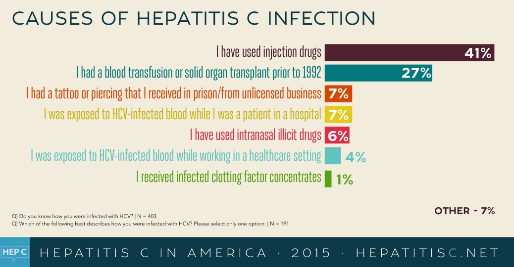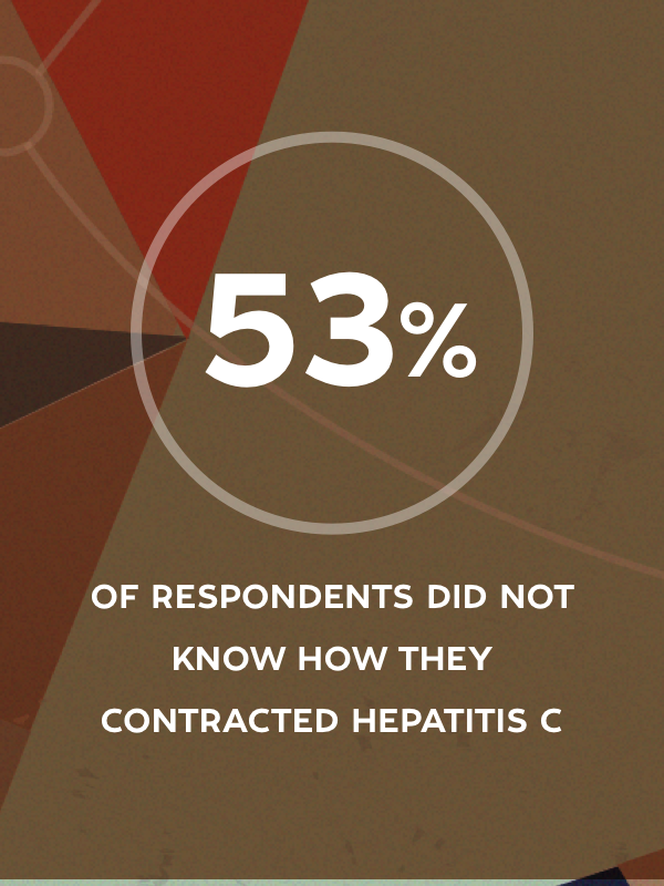 While injection drug use and blood transfusion/organ transplant were the most commonly reported cause of hepatitis C infection, many of our respondents did not know how they contracted hepatitis C.