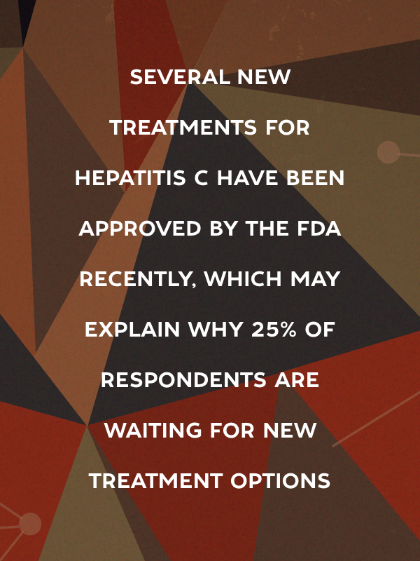 There have been several new treatments for HCV approved by the FDA, which may be the reason that 25% of respondents said that they were waiting for new treatments to be made available.