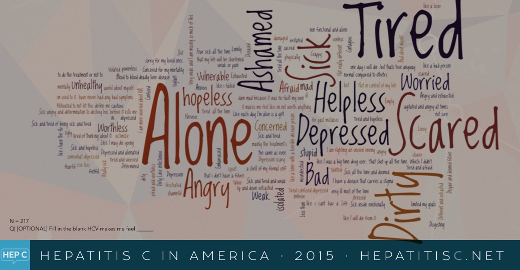 There are a whole host of emotions that come with a diagnosis of hepatitis C, and our respondents shared many of theirs with us. Many respondents said that hepatitis C makes them feel alone, angry, tired, and scared.