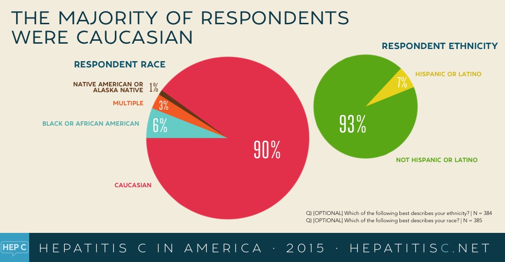 The vast majority of survey respondents were Caucasian, while 6% were Black or African American. In the general US population, Hepatitis C is more prevalent in African Americans than in Caucasians.