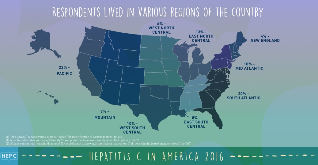 The team at HepatitisC.net conducted our annual “Hepatitis C in America” survey with the goal of gaining a better understanding of the many aspects of what it’s like to have been infected with hepatitis C. In this survey, we included questions about diagnosis, symptoms, treatment, and the impact that hepatitis C has on a person’s day-to-day life. Over 400 people completed our 125-question survey, and we have summarized some of the key results from this year’s survey.